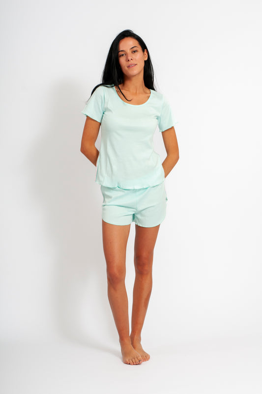 Precio habitual $16.000Precio habitualPrecio unitario / porPrecio de oferta $16.000¿Por qué no verse linda y coqueta para dormir? Verse linda no significa perder la comodidad. Con el pijama cielo de algodón Pima peruano podrás disfrutar de esas noches de verano sintiéndote linda, cómoda y fresca a la vez. Fíjate en el detalle en su costado, una pequeña cinta que parte en la polera y termina en el short. Este detalle te hace ver mas... -